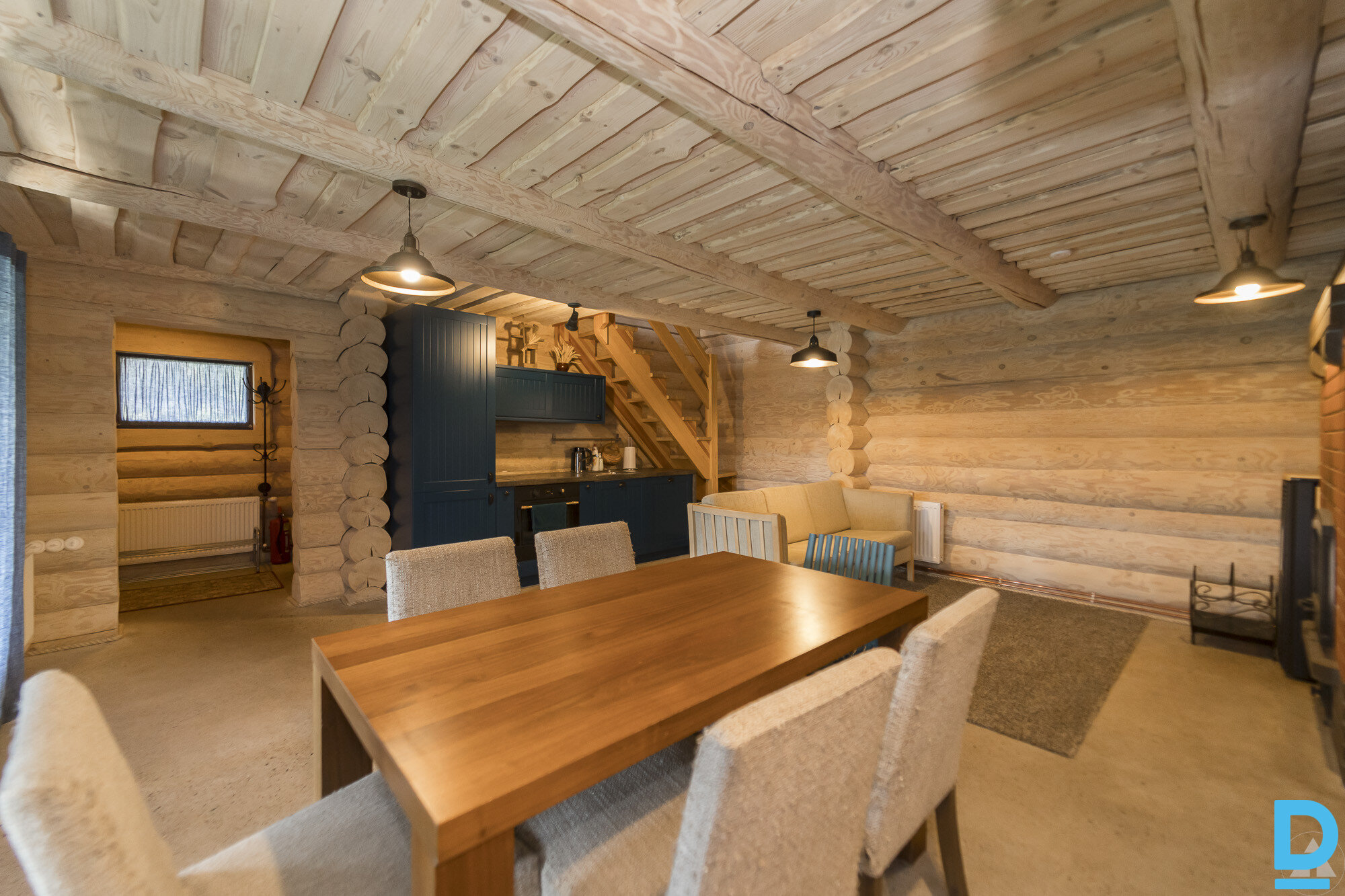 1) Дом состоит из двух этажей. На 1 этаже расположены: + гостиная совмещенная с кухней; + ванная комната; + терраса. На 2 этаже расположены: + три изолированные комнаты; + коридор; Окна дома выходят на озеро и во двор. Параметры дома: + монолитный железобетонный фундамент; + наружные стены и каркас – деревянные бревна, деревянные каркасные конструкции; + кровля – металлочерепица. + в доме полы с подогревом. Два типа отопления - гранульный котел и дровяной камин. Высота потолков на 1 этаже – 2,27 м, на 2 этаже – от 1,24 м до 2,27 м. Коммуникации: + вода – глубокая скважина 58 м; + биоканализация; + 3-х фазное электричество. 2) Параметры бани: + монолитный железобетонный фундамент; + наружные стены – бревна, кирпич; +кровля – битумная. Планировка предполагает 2 этажа. На 1 этаже расположены: + кухня; + гостиная; + душевая; + баня; + туалет; + коридор; + терраса; + зона отдыха с видом на озеро. На 2. этаже расположена спальная зона, состоящая из двух комнат. Коммуникации: + вода – глубокая скважина 58 м; + биоканализация; + 3-х фазное электричество. На 1 этаже полы с подогревом. Три вида отопления - гранульный котел, дровяной камин и дровяная печь в бане. Окна бани выходят на озеро и во двор. Зеленый благоустроенный двор. Рядом спортивная площадка Pāce, замковая гора Pāce, остановка общественного транспорта. Центр Дундагасской волости находится в 4,5 км, до Талси - 38 км, а до Риги - 125 км. Через поселок проходит автомагистраль P77 Вентспилс-Дундага. Поможем с подготовкой оценки имущества. Смело звоните, покажу недвижимость в удобное для вас время. |
