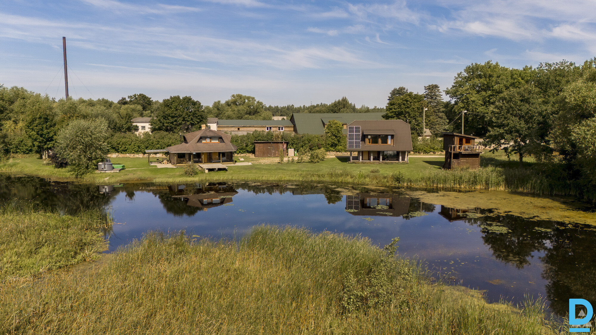 На берегу озера “Baložezers” продаются дома 2020 года постройки с собственным берегом и зоной для купания. Площадь дома – 117 м2, площадь , бани – 120 м2. Также на территории имеются две деревянные вспомогательные постройки – библиотека и сарай.