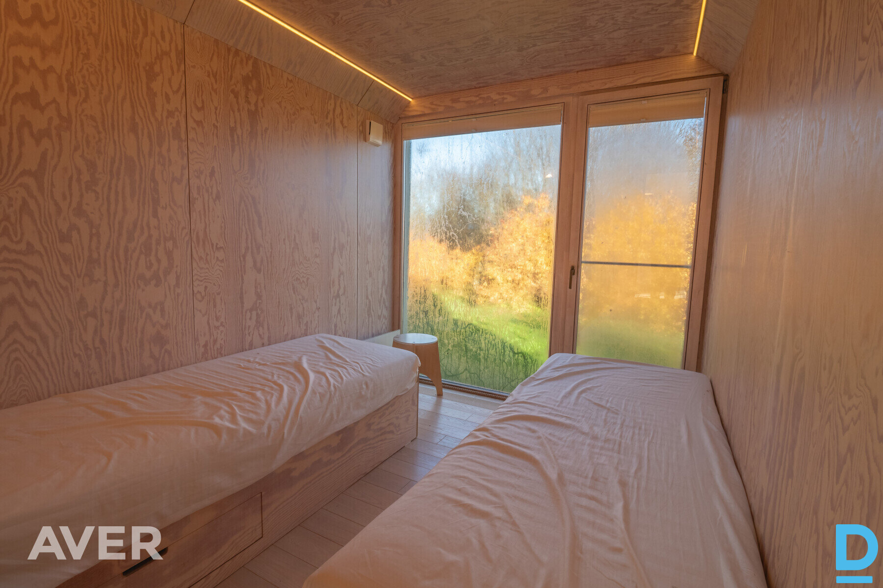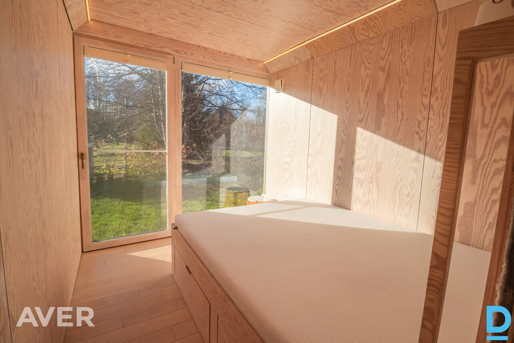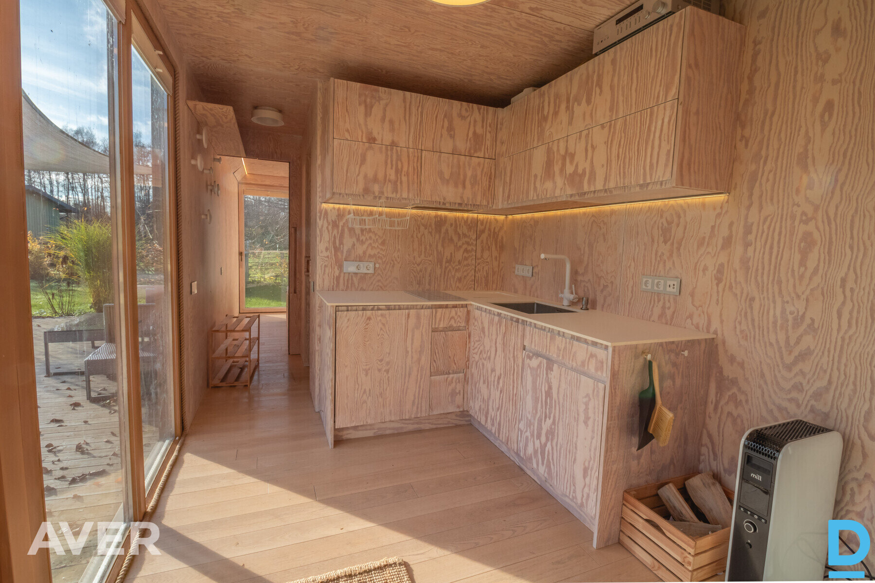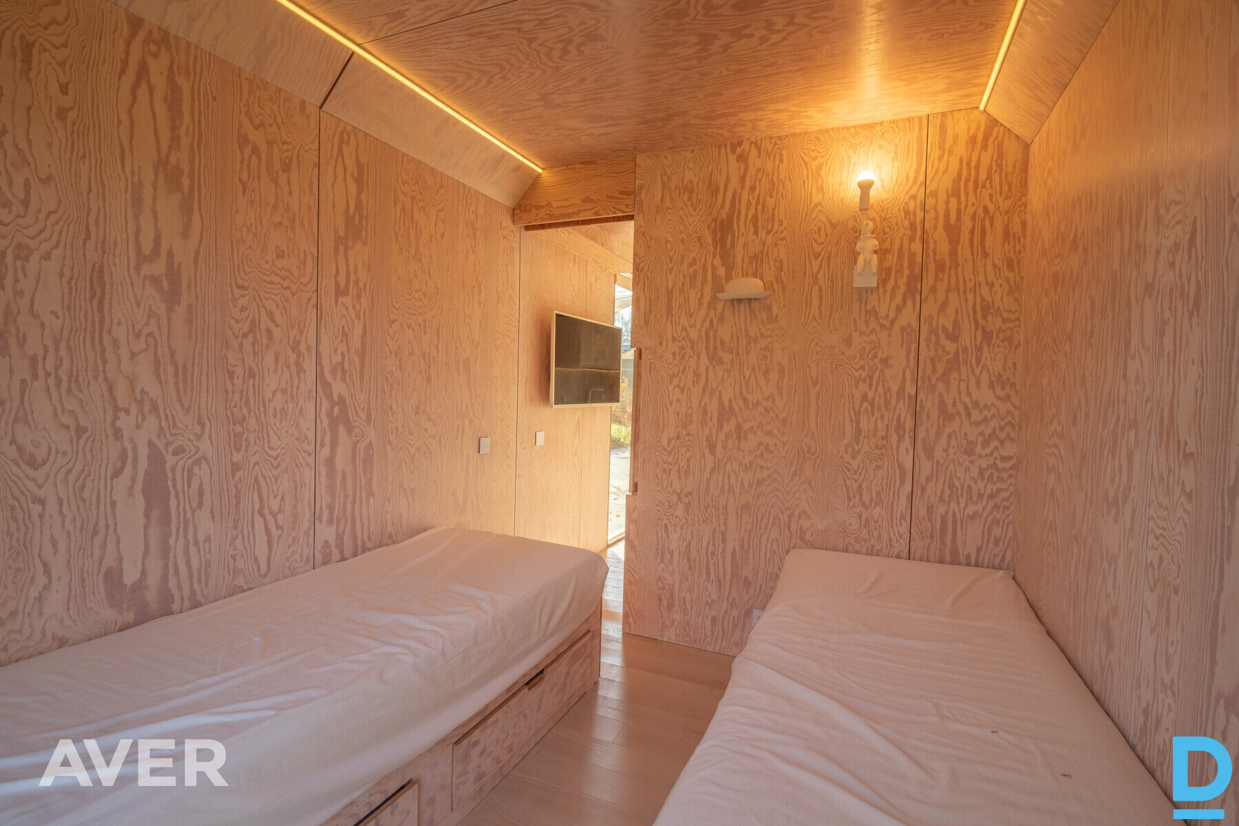 Tikai 200 metrus no jūras - pilnībā aprīkota atpūtas māja ar skaistu, labiekārtotu teritoriju. Iespējams izmantot personīgām vajadzībām vai īstermiņa īres biznesa attīstīšanai. Siltināts un pielāgots dzīvošanai jūras konteiners. Ēka nodota ekspluatācijā 2022. gadā. Apsildei var izmantot kamīnu vai attālināti vadāmus elektriskos radiatorus. Vannas istaba aprīkota ar infrasarkano sildītāju. Karstajam ūdenim uzstādīts boileris. Ierīkota ūdens mīkstināšanas / atdzelžošanas sistēma. Mājas plānojuma apraksts: - dzīvojamā istaba un virtuves zona; - 2 izolētas guļamistabas; - vannas istaba un tualete; - terase. Cenā iekļautas visas attēlos redzamās mēbeles un aprīkojums. Istabās ieklāta dabīgā koka grīda un uzstādīti stikla pakešu logi ar koka rāmjiem. Pilnībā aprīkota virtuves zona ar iebūvēto sadzīves tehniku - indukcijas plīti, cepeškrāsni, tvaika nosūcēju. Dušā uzstādīts maisītājs ar termostatu. Terase aprīkota ar vēja burām, apgaismojumu un skaņas sistēmu. Uz terases novietotas dārza mēbeles 4 personām un ēdamgalds līdz 8 personām. Teritorijā pieejams karstais kubls ar malkas krāsni, kā arī vasaras duša. Uzcelts slēdzams šķūnis dārza piederumu un citu mantu glabāšanai. Jūras pludmale vien 2 minūšu gājiena attālumā. Tuvākais pārtikas veikals atrodas 2 minūšu braucienā. 400 metru attālumā pieejama sabiedriskā autobusa pietura. 4 minūšu braucienā Roja, līdz Rīgai 1 stunda 30 minūtes. Zvaniet, rakstiet (SMS, Whatsapp, E-mail), lai noskaidrotu sīkāku informāciju. |